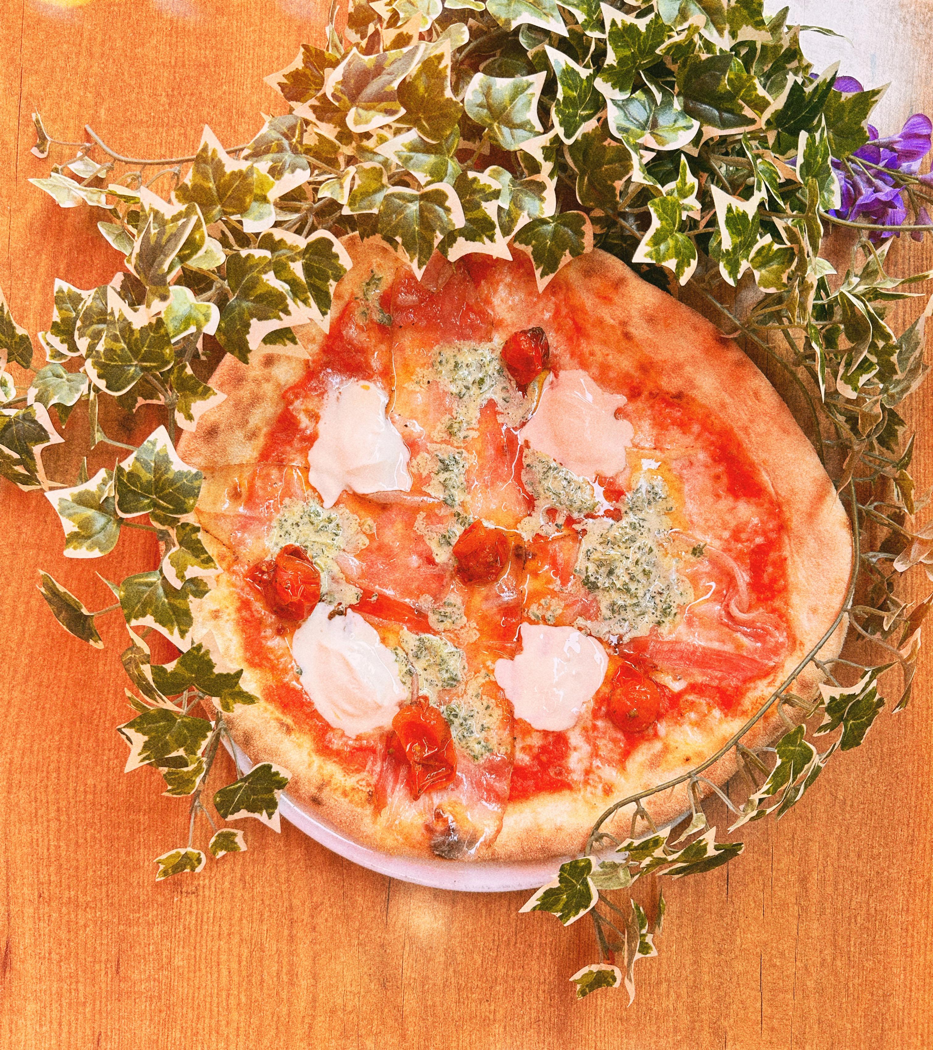 La Grissiflette Sauce tomate, mozzarella fior di latte, taleggio, coppa grillée, épices shichimi, oignons nouveaux€ 15.50 La Grissiflette